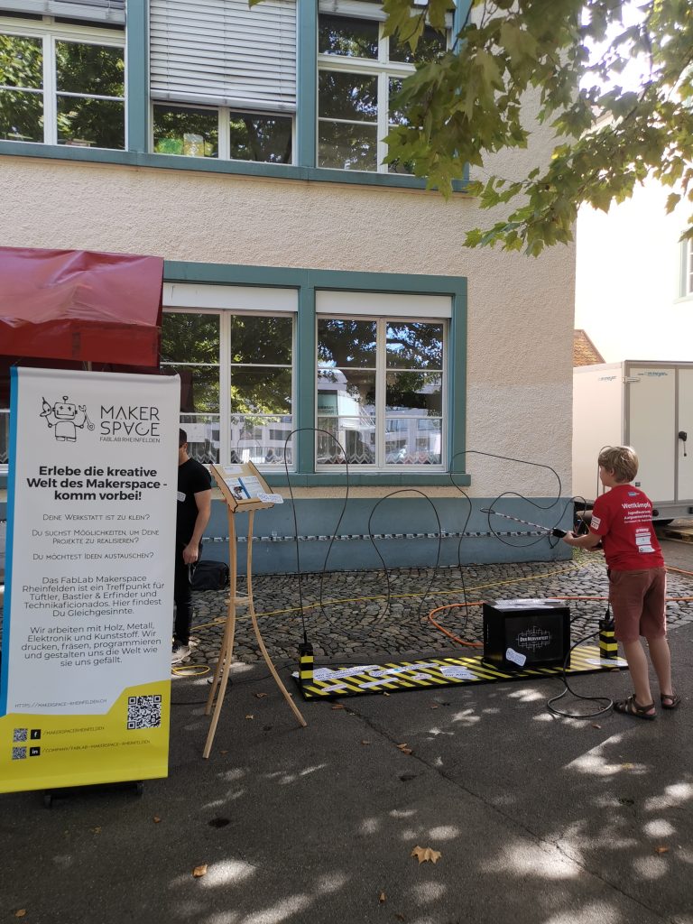 Rheinfelden, 7. September 2025 – Das Fablab Makerspace Rheinfelden war beim diesjährigen Andiamo-Festival auf dem Dach des Rheinparkings mit einer besonderen Attraktion vertreten: Einem überdimensionalen „Heißen Draht“ – gebaut in tagelanger Gemeinschaftsarbeit in unserer Werkstatt.